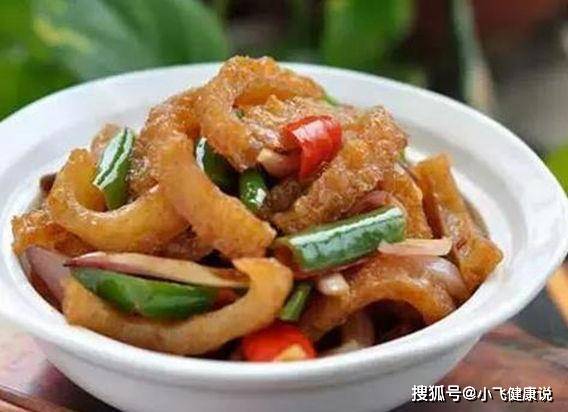 做法:1、炸豬皮用開水煮過後用清水浸泡數小時,直至豬皮膨脹有彈性。