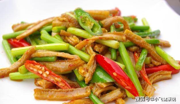 3、同生青椒絲和蒜片擺盤上桌