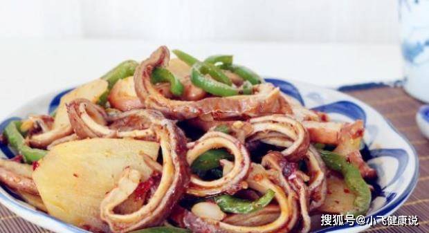 1.熟豬肚切細條,尖椒切細條,土豆去皮切片,蔥和蒜切末。