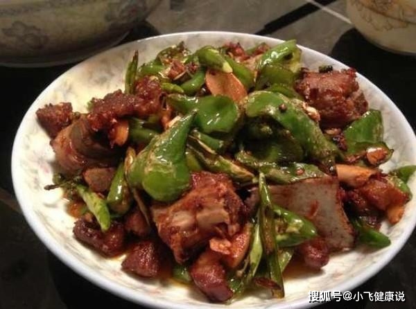 材料:排骨500克青辣椒三個;油一勺鹽一撮姜絲一撮;