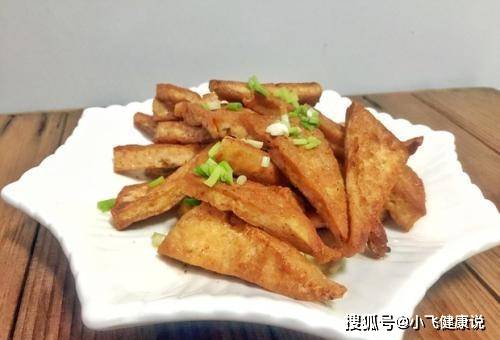 3、鍋中放入油,將豆腐下鍋,煎至一面金黃後,翻邊煎另一面;