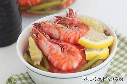 4、另取一鍋水沸後,放入薑片、蔥段、料酒,放入鮮蝦煮至完全變色,撈出浸入冰水中,撈出瀝干