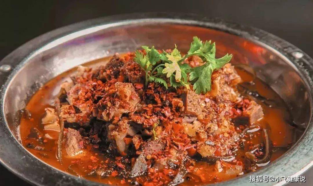 3.鍋里放少許色拉油燒熱,下剁椒末、小米椒末和牛腩塊,小火炒香後,加入原湯燒開,再舀在墊有海帶絲和芹菜節的鍋仔內,撒上刀口辣椒、花椒麵、姜米、蒜米、蔥花和芹菜末,隨卡氏爐一起上桌,點火燒開後食用。