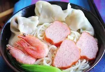 5. 將面條、蝦、火腿依次擺在面條上,最後倒入面條湯即可。