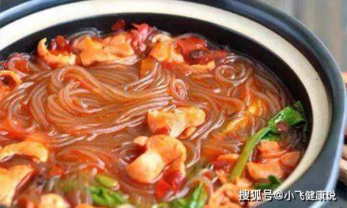 6、倒入一湯匙白醋,撈入煮好的粉條,大火煮開。