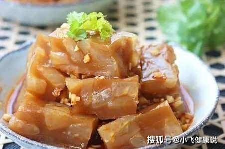 12、將調料蒜末、薑末各適量、辣椒油2小匙,白糖1小匙,鹽少許,雞精少許,芝麻油1小匙,醋2小匙放入小碗中拌勻,倒在肉皮上即可