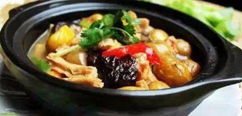 4、加水,放入蒸熟的栗子,再加入鹽、蘑菇粉、醬油、胡椒粉,調好味,淋上幾滴芝麻油。