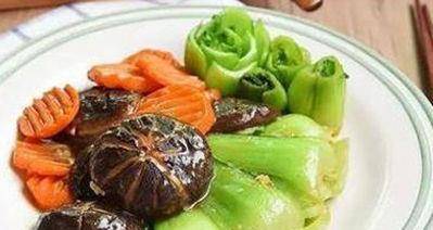 材 料:香菇200克,青菜500克,胡蘿卜150克,姜 5克,鹽2克,素蠔油15ML,澱粉8克
