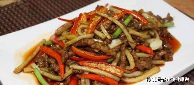 食材:杏鮑菇200克、牛肉150克、青紅辣椒、植物油40克、鹽10克、姜3克、澱粉5克、生抽10克、香油5克、雞精1克、胡椒粉1克