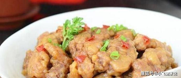 2、把切好的碎肉,放入麵糊中,醃制10分鍾;油中火燒熱,把拌上麵糊的碎肉炸至7分熟;