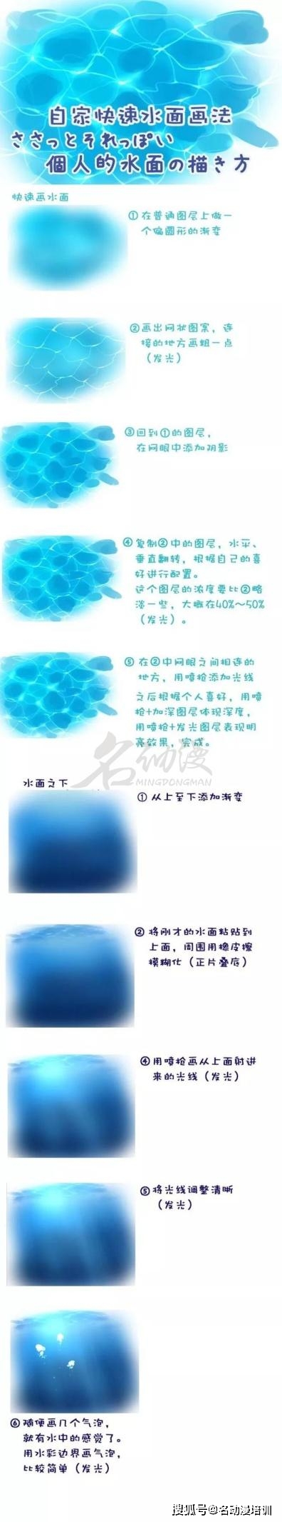 現在我們就以水的動態為例,給大家簡單說說幾種常見的水花畫法。