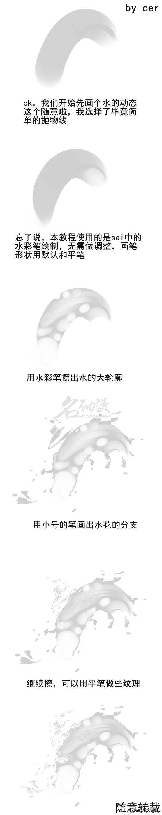 水花還有比較激烈的款式,比如下面這種「跳躍」形態的,這里我們也是先從整體出發,抓住特點然後一點點解決。