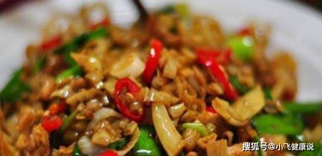 4、鍋中倒油燒熱,放入雞胗翻炒至變色,然後翻放入料酒、姜、蒜等翻炒均勻,再放入剁椒炒一分鍾左右,最後放入蔥段、生抽、芝麻油,炒均勻,就可以盛出來食用了。