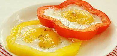 原料:紅彩椒1個;黃彩椒1個;雞蛋2個;鹽;黑胡椒各少許;
