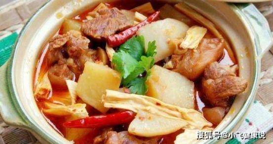 1.羊肉涼水下鍋,放入薑片大火煮開