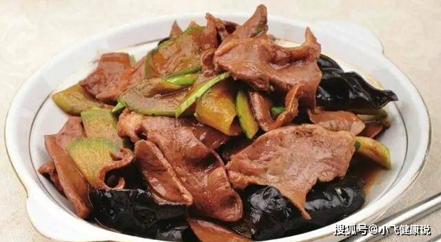 4、鍋上火,倒入花生油燒熱,蔥、姜爆香,倒入豬心煸炒,烹入米醋、醬油,下入黃瓜、水發木耳翻炒,調入精鹽、雞精炒熟,淋入香油炒勻,盛在盤內即可。