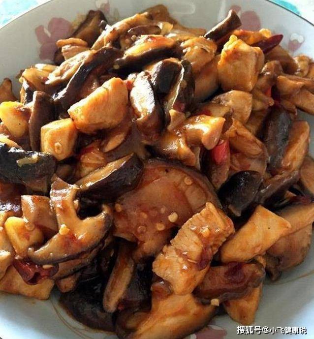 材料:雞脯肉、香菇、平菇、圓蘑菇、蔥、鹽、糖、料酒、生抽、鮮貝露