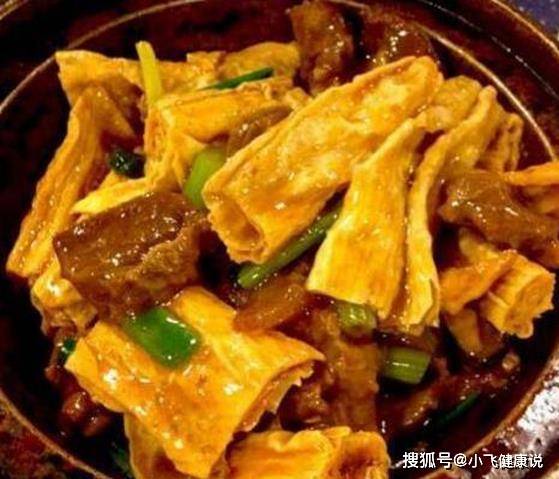 材料:牛腩500g,腐竹500g,醬油30ml,鹽少許,八角2個,姜1塊,大蒜2個,冰糖3顆,油適量