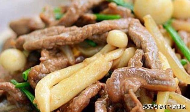 5.再將海鮮菇放入炒軟,倒入牛柳同炒,放入蚝油炒勻;