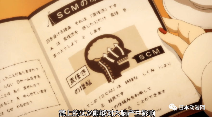 scm成為揭露人性的關鍵,也成為這部動畫的劇情要素。在後續的故事中,幾乎所有情節都是圍繞著這個設備來展開,玩這種游戲的人要麼想得到奴隸,要麼想得到刺激感,從中獲得一些好處,也正因為如此,在游戲進展的過程中,才能看到許許多多的人性劣根性。