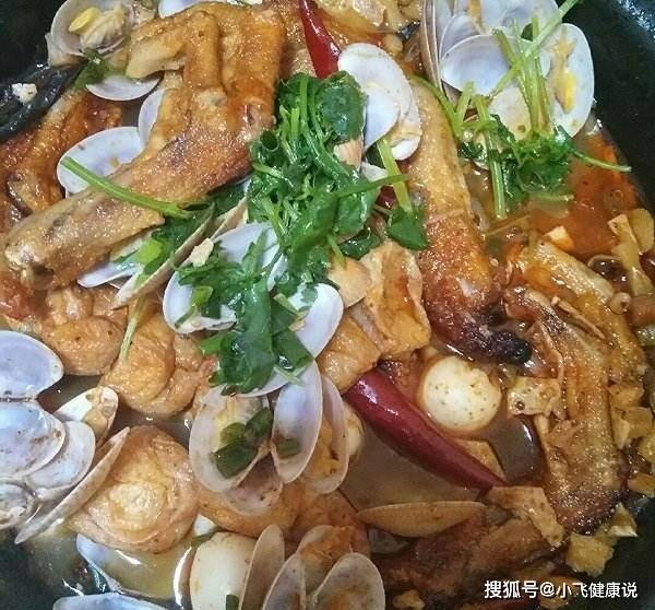 2、鍋入菜籽油50克燒至六成熱,下入黃鴨叫煎至表皮發黃,倒入薑片、大蒜子翻炒出香,烹少許白酒,沖入豬骨湯至沒過原料頂端,大火燒開,待湯汁熬至濃稠泛白時下入蛤蜊,添入紫蘇碎10克、青椒碎、干紅椒碎各5克,快起鍋時調入鹽12克、味精10克,淋入少許豬油提亮增色即成。