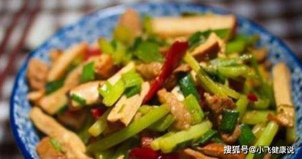5、將煸炒過的肉片回鍋,鍋內噴入少許料酒翻炒均勻;將切段香芹倒入鍋中,與鍋中材料快速翻炒均勻,鍋內淋入少許生抽炒勻,即可起鍋;