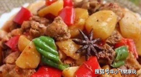 2、然後加入醬油,糖,鹽和料酒。翻炒均勻後加熱水,蓋上鍋蓋燉煮10-15分鍾。然後加入土豆塊,繼續燉煮5分鍾。再加入洋蔥、辣椒。燉煮2-3分鍾即可。