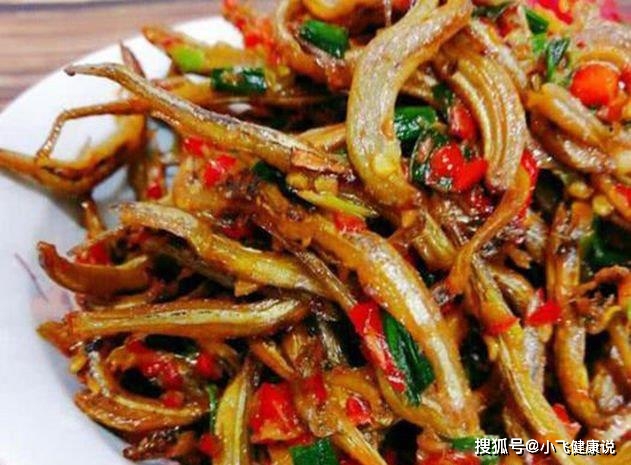 2、起油鍋下梅鱭魚干煸炒,煸炒至雲焦黃盛出備用。