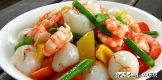 食材:蝦仁、荔枝、蘆筍、彩椒、雞蛋、姜、生粉、鹽、胡椒粉