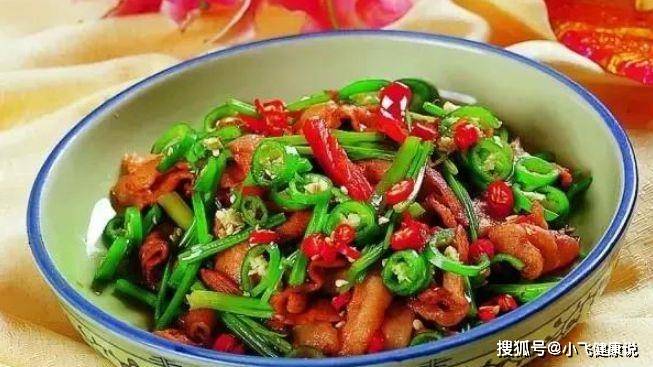 1.將五花肉洗淨後切成薄片,尖椒和朝天椒洗淨後斜切成條狀,大蒜去皮切成片備用。