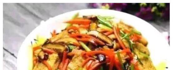 4、再加入胡蘿卜絲炒香;倒入煎好的豆腐,再倒入150毫升水;淋入醬油和一茶匙鹽拌勻,水開後煮1分鍾;