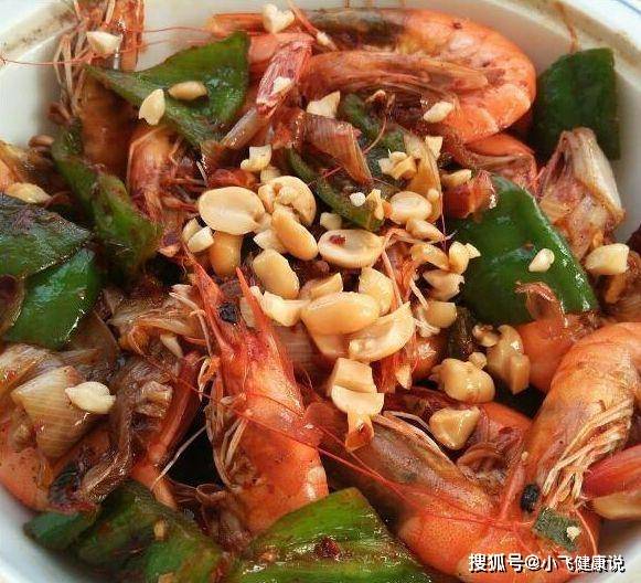 食材:基圍蝦、白酒、鹽、味精、胡椒、花椒、干紅辣椒、炸好的花生;