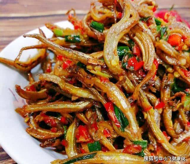 2、起油鍋下梅鱭魚干煸炒,煸炒至雲焦黃盛出備用。