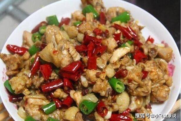食材:雞肉400g、干紅辣椒20個、尖椒10個、八角、豆瓣、花椒、大蒜、醬油、料酒、色拉油