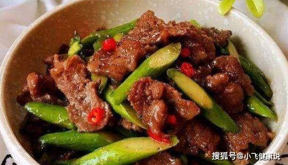 食材:蘆筍、牛肉、油、黑椒汁、鹽、生粉、料酒、蒜末各適量。