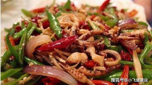 1、先熱水焯一下魷魚須,瀝干,加蔥姜、料酒、耗油、味精、糖(提味,可不加)、甜面醬(必需品)和孜然醃制2個小時。干熱平底鍋,放入醃制好的魷魚須(注意不要料湯),干煸翻炒幾下。