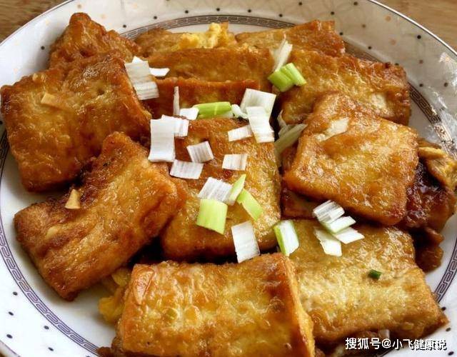 6.一面煎黃後,翻面,直至豆腐煎至2面金黃色,依次煎完全部的豆腐。