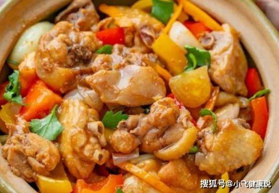 5、再翻炒一會,雞肉會出水,如果出水不多,可以稍加一點湯,沒過雞肉的一半即可。