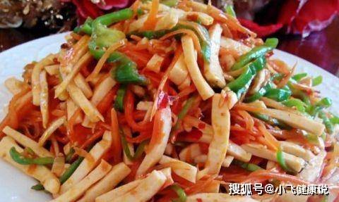 食材:千葉豆腐150g、木耳50g、尖椒30g、胡蘿卜50g、蒜適量、紅干椒適量、糖1小勺、白醋半勺、老醋1小勺、鹽2g、胡椒粉少許、水澱粉少許、生抽老抽1小勺、干澱粉1小勺