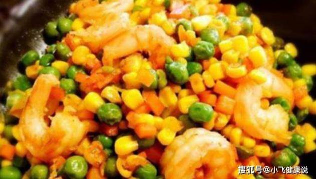 4.另起一熱油鍋,倒入蒜碎,黃瓜丁胡蘿卜丁,玉米粒翻炒加少許鹽炒至八成熟