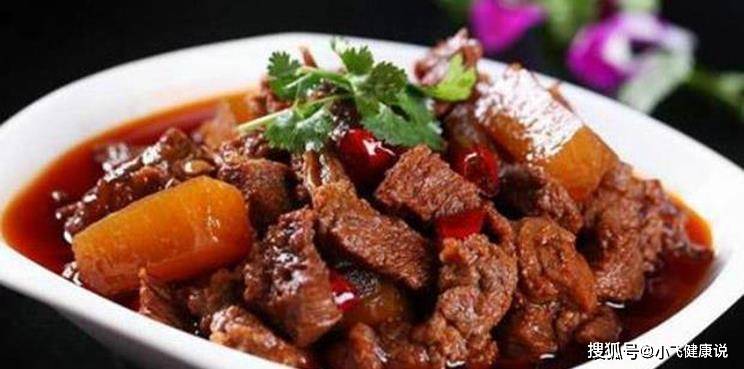 2、放入五成熱的油鍋內,爆炒成金黃色,加入料酒再炒,隨後加入清水(浸沒牛肉),並把蔥、姜、桂皮、八角以及白糖、醬油放入,蓋好,移到溫火上煨燒二三小時;