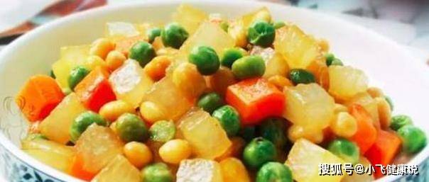 材料:冬瓜200克,豌豆50克,黃豆50克,胡蘿卜30克,鹽,油,醬油各適量。