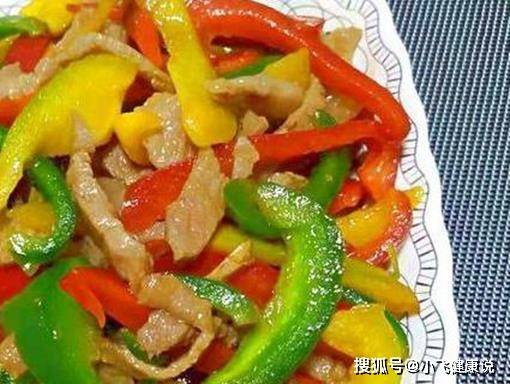 食材:豬肉適量、(青紅黃)彩椒各一個、姜絲少許。配料:油鹽適量、一勺醬油、一勺蚝油、適量胡椒粉