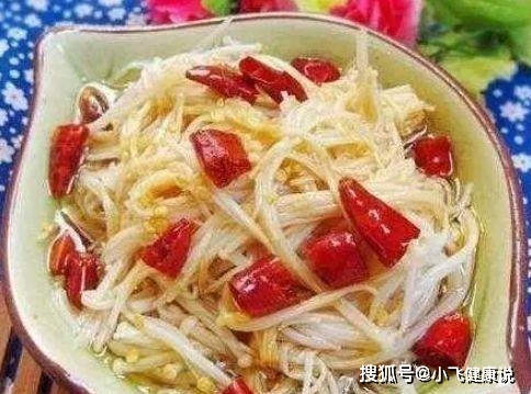 食材:金針菇300g、油適量、鹽適量、生抽適量、白砂糖適量、干辣椒適量
