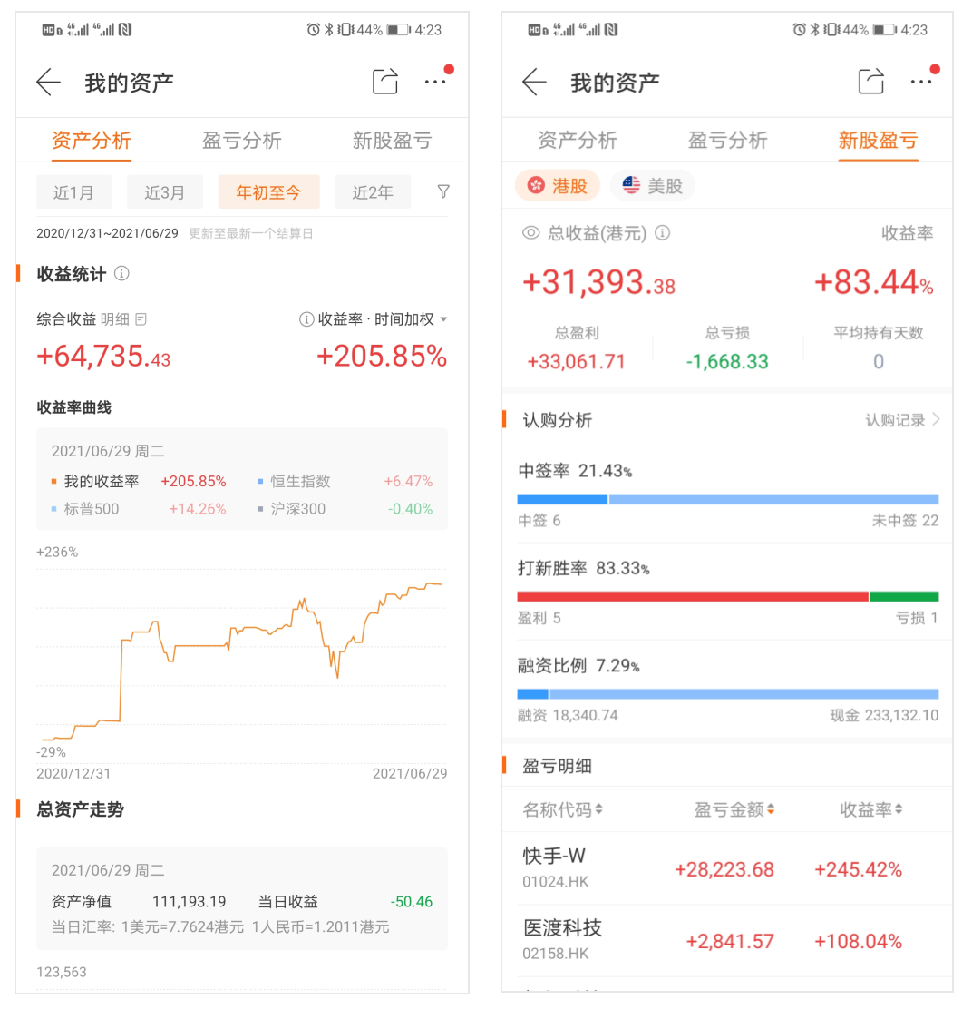 半年打新收益:31393港幣