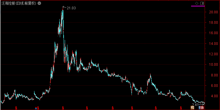 6月28日,泛海控股(000046)股價跌停,至收盤報收2.41元,跌幅10.07%。