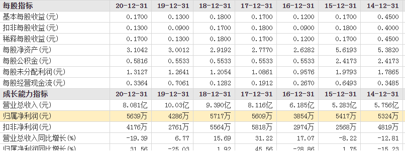 2020年財報顯示,電光科技全年實現營收8.08億元,歸母淨利潤為5639萬元;2021年一季度公司實現營收1.42億元,同比增長24.84%,實現淨利潤959.9萬元,同比增長1.37%。
