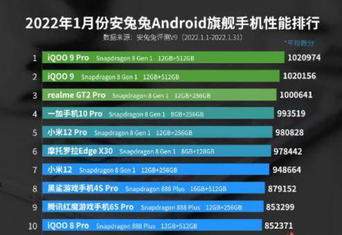 而隨著2022年1月份的結束,安卓的手機性能榜也隨之迎來了一次更新,值得一提的是,這次性能榜的第一終於不再是之前頻繁霸榜的黑鯊4Pro了。