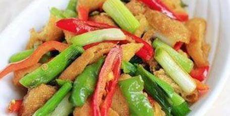 材料:青蒜、油豆腐、青椒、紅辣椒、姜、植物油、食鹽、雞精、醬油