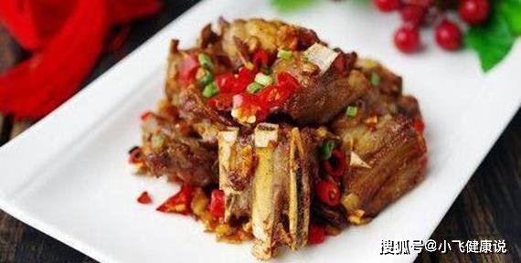 4、另起油鍋,放入蒜粒炒出香味,放入炸好的羊排翻炒,放入小米辣,蔥花,翻炒均勻即可。